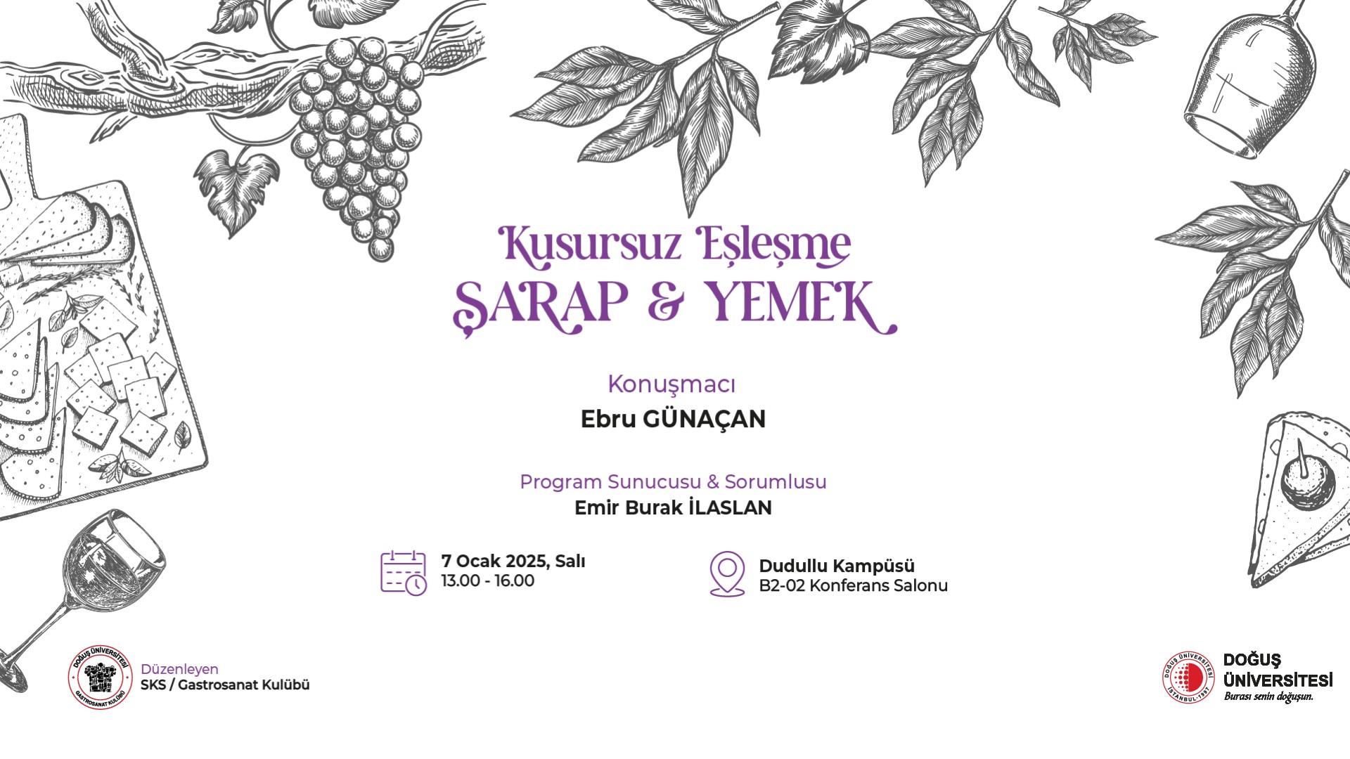 Haberler Tarih: 21 Ekim 2025 Kusursuz Eşleşme: Yemek & Şarap Gastronomi ve Mutfak Sanatları Bölümü tarafından düzenlenen “Kusursuz Eşleşme: Yemek & Şarap” etkinliği, Ebru Günaçan’ın katılımıyla gerçekleştirildi. Etkinlikte Günaçan, yemek ve şarap eşleştirmesinin temel prensiplerini, duyusal uyumun önemini ve gastronomide denge yaratmanın inceliklerini katılımcılarla paylaştı. Programa gastronomi öğrencileri ve öğretim üyeleri katılarak etkinliği ilgiyle takip etti.